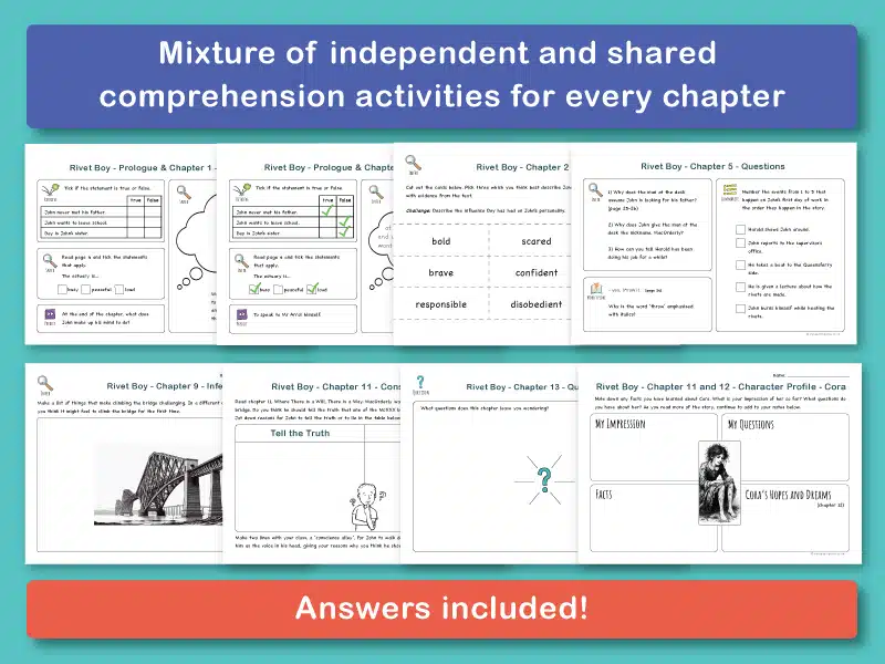 KS2 Whole class reading comprehension resources based on Rivet Boy by Barbara Henderson. Ideal read in support of a KS2 Victorians topic as recommended by Books for Topics.